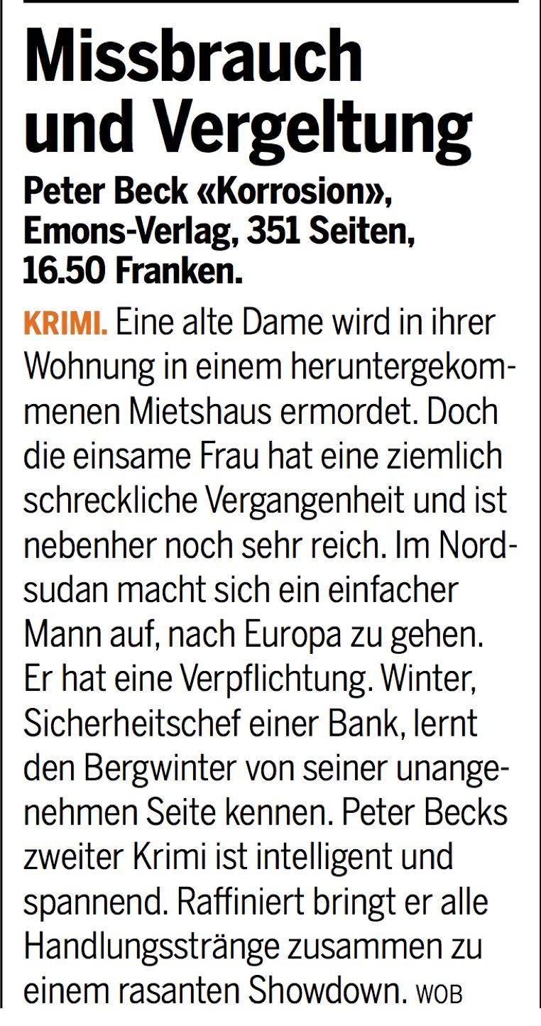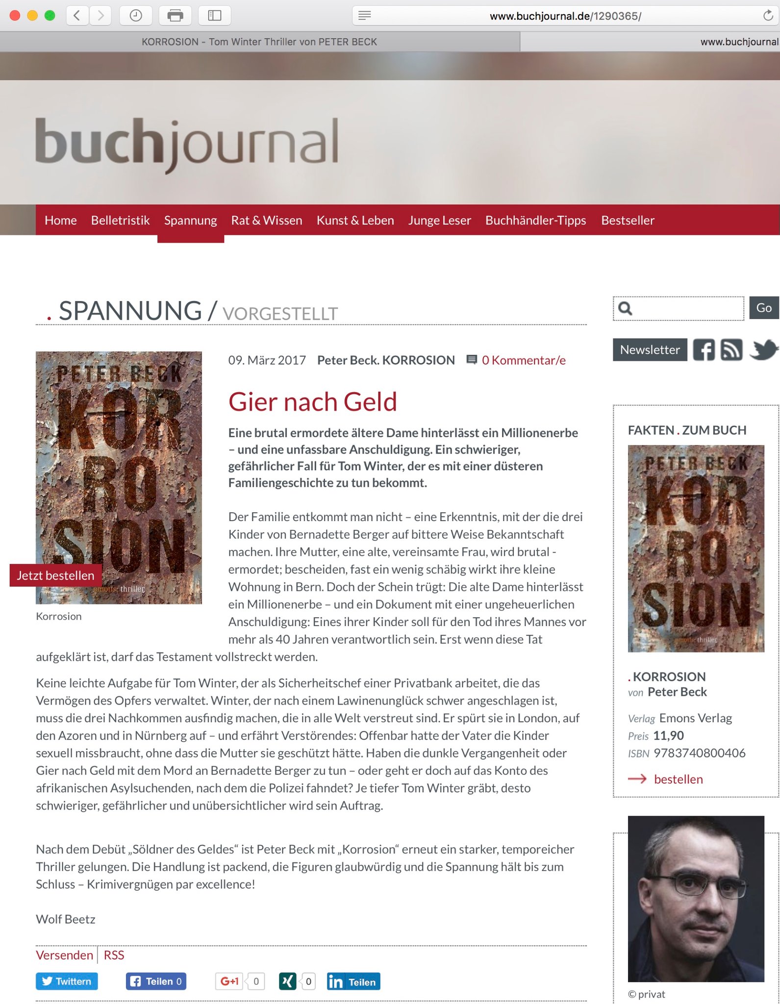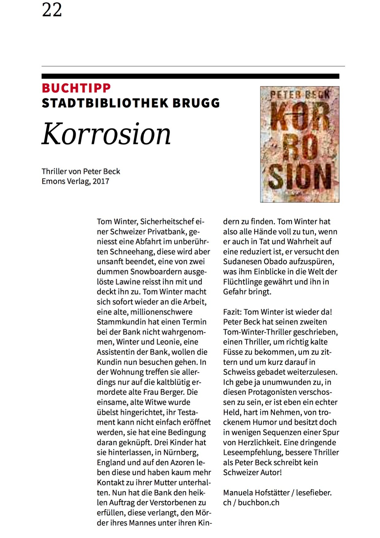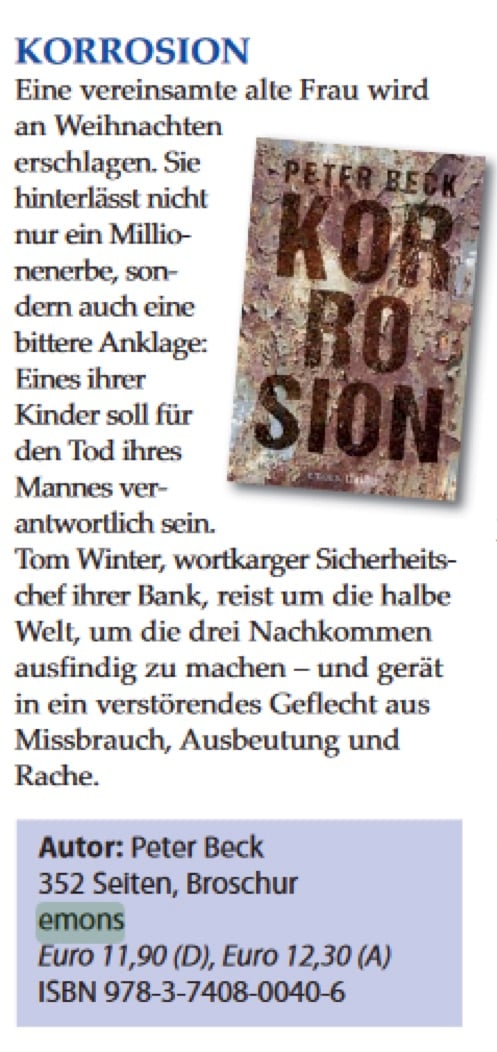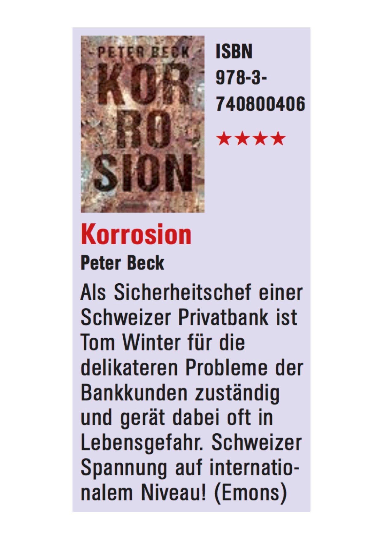 Articles about KORROSION (German 2017), the second thriller with Tom Winter.