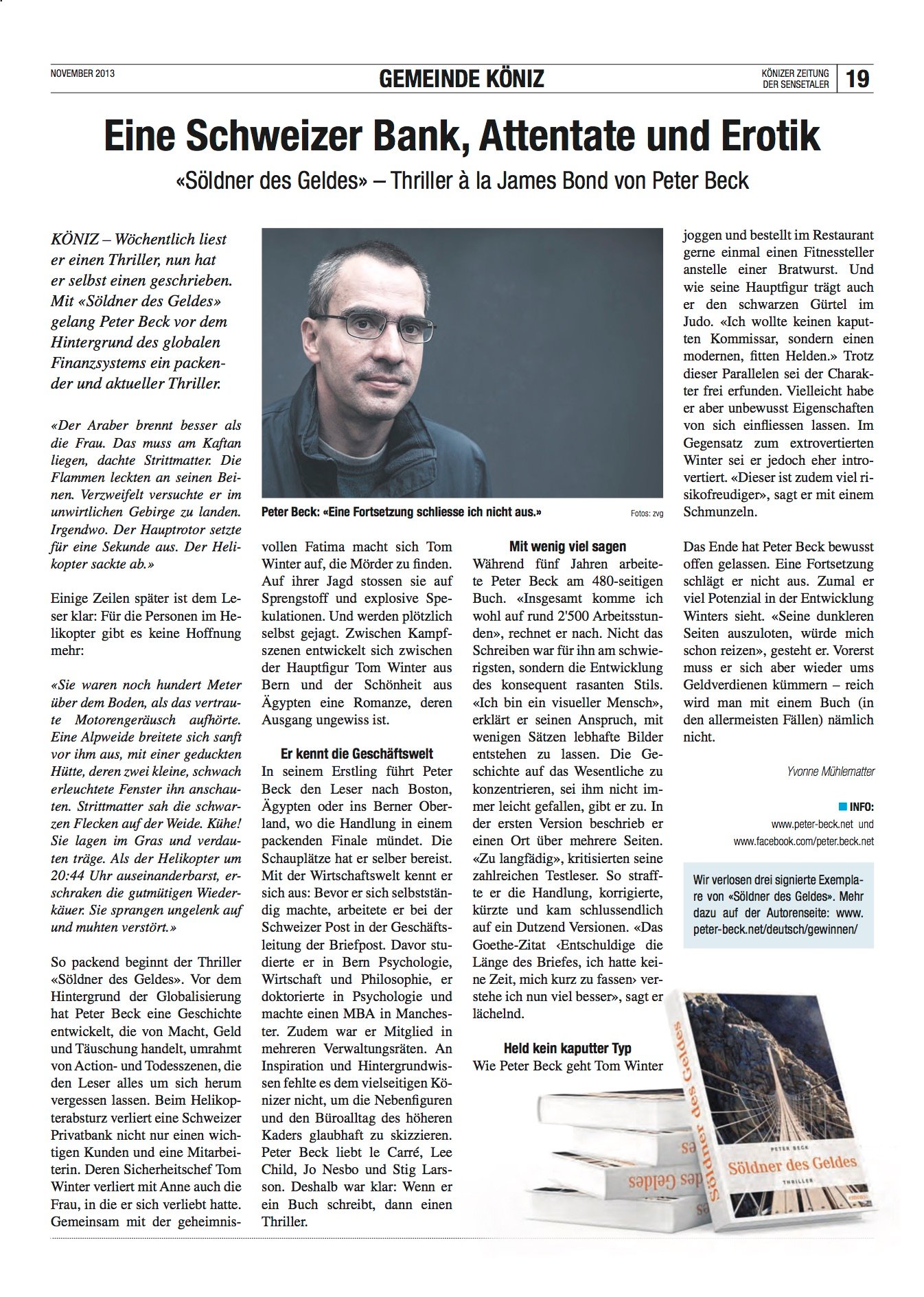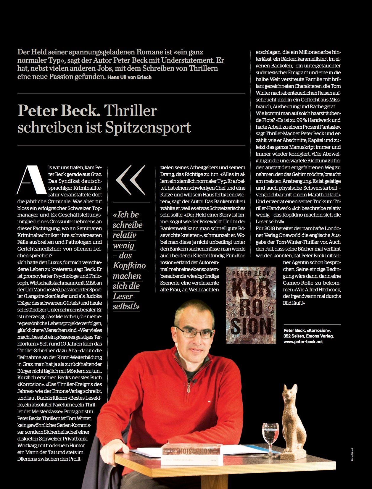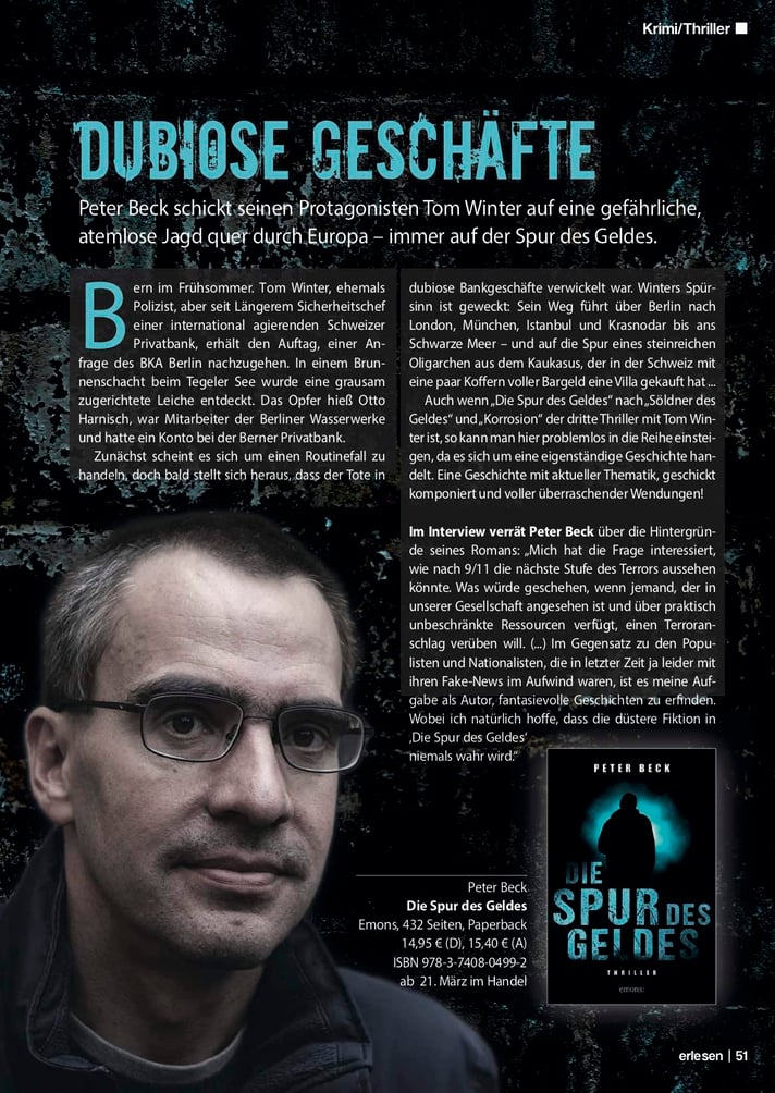 “Brilliant thriller.” TripFiction - “Enormous pace. A treat.” Mystery People - “Top-notch crime fiction!” Buchjournal - “Breath-taking action.” Buchmagazin - “Utterly convincing thriller” Neue Westfälische - “Brilliantly constructed thriller!” Deutsche Presse Agentur dpa - “Great storyteller, intelligent reading.” Berner Zeitung - “Awesome!” Coopzeitung - “A truly international thriller” Rhein-Main-Magazin - “Fast-paced international thriller” Tourbillon Magazin - “Ingenious, tough thriller” Lübeck Kultur-Magazin - “Fascinating hero.” Anzeiger von Saanen und Gstaad - “Fast, cool and laconic, with strong women.” Sakida Interviewmagazin, Hamburg - “His name is Winter, Tom Winter.” Der Bund - “Thriller à la James Bond.” Könizer Zeitung - “Captivates readers immediately. Swiss James Bond” (9 out of 10) Krimikiosk - “Great suspense guaranteed, dry humour.” Das Hauptstadt Magazin - “Convincing, gripping.” ekz Bibliotheksservice - “Laconic and dramatic.” Telepolis - “Strong characters.” Berner Oberländer - “Gripping holiday reading.” Seniorenweb - “Breath-taking story, great finale” Buch der Woche - “Wham, bam. Scenes of deadly danger.” Thuner Tagblatt - “Great arc of suspense. Gripping from the first page to the end.” Lebenszeit - “Specacular debut.” Österreichischer Kulturpass - “Cult figure Tom Winter” Thuner Tagblatt - “My favourite investigator!” Stephanus Buchhandlung - “Accomplished characterisation.” Der Bund - “Great storytelling” Leserkanone - “Beck delivers!” Berliner Bande - “Outstanding thriller. Fascinating investigator” Tatort - “Cool, matter-of-fact, fast.” Meine-Kommissare(dot)de - “Perfect action cinema!” Laberladen - “Fast-paced” 20Minuten - “A page-turner” 100 Geschichten - “Sophisticated suspense” Dorfzeitung(dot)com - “Action-packed” Luzerner Zeitung - “The reader gets sucked in” Lesart - “From page-turner to chamber drama” Thriller&Krimiclub - “Definitely recommended reading!” Kriminetz - “Brilliant characters.” Finanz&Wirtschaft - “No Swiss author writes better thrillers” Lesefieber